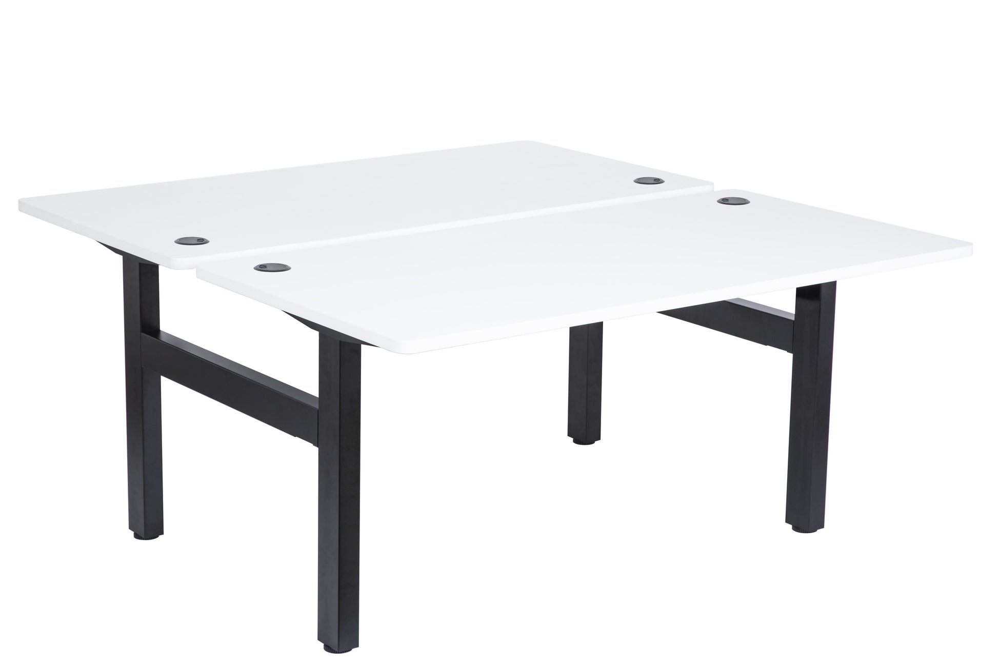 EMERGE FIXED HEIGHT BACK TO BACK DESK 1500W X 750D BLACK FRAME WHITE TOPS