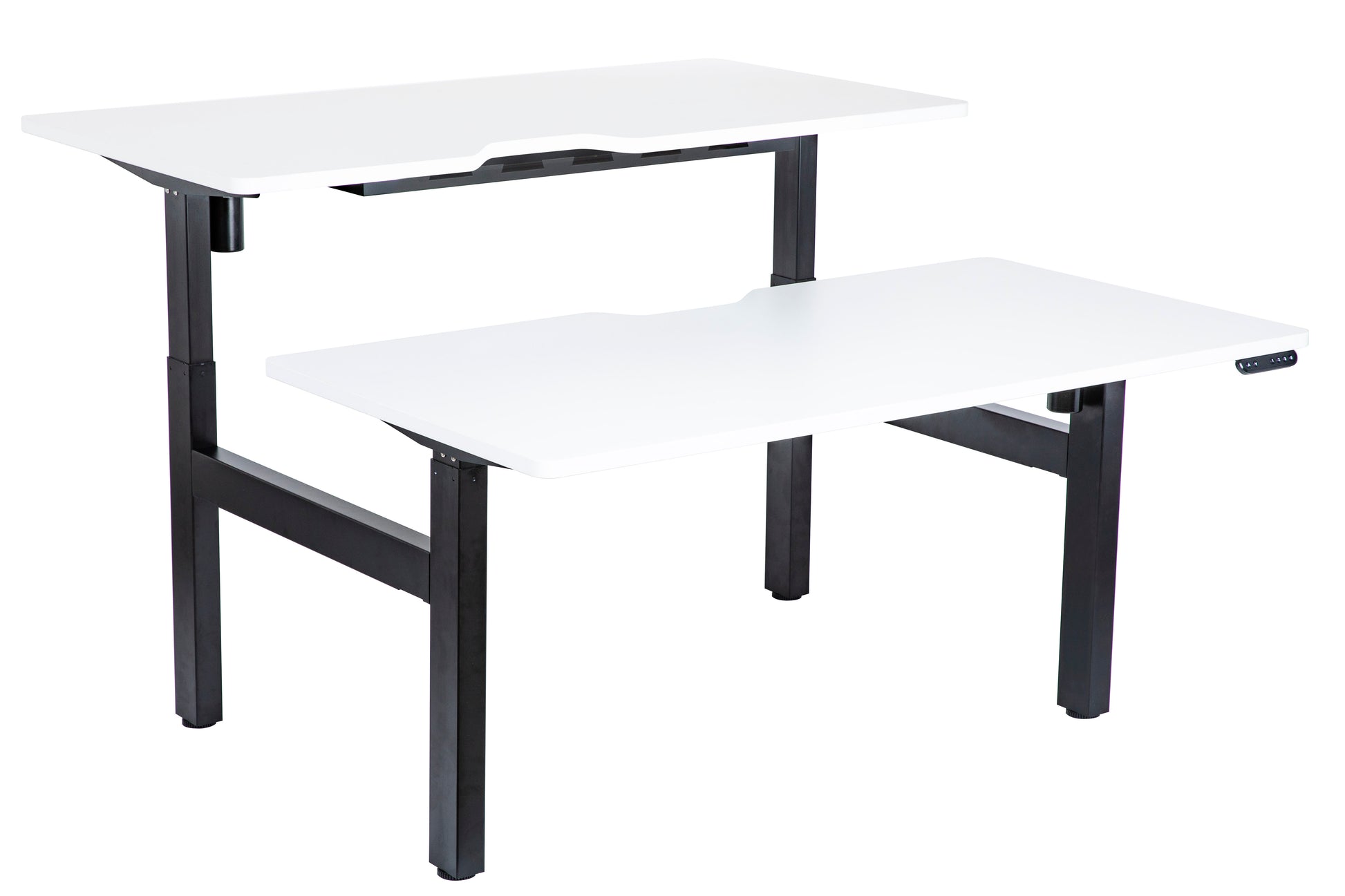 Height Adjustable Dual Motor Back to Back Desk Black Legs White Scallop Top 1500w x 750d
