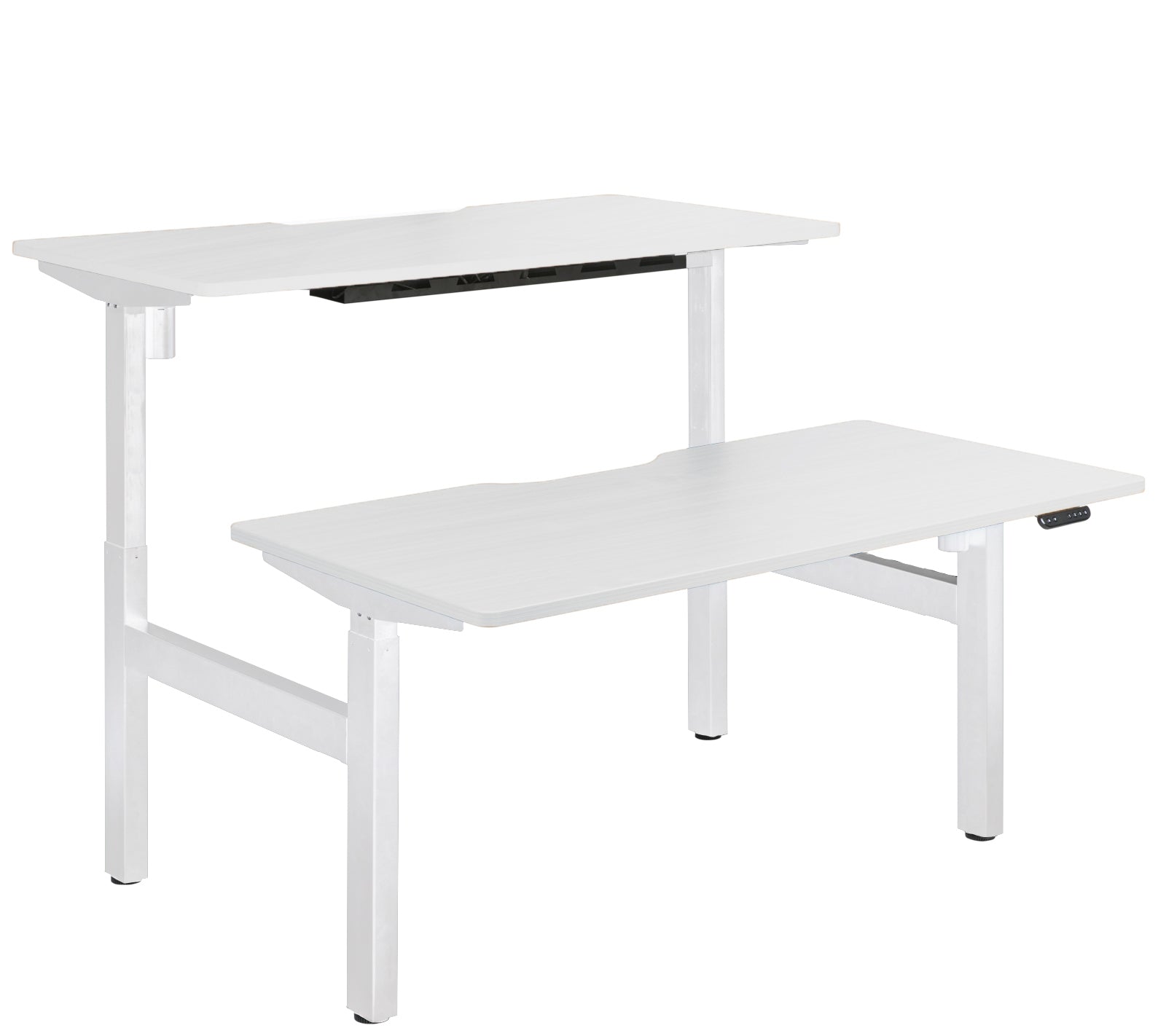 Height Adjustable Dual Motor Back to Back Desk White Legs White Scallop Top 1500w x 750d