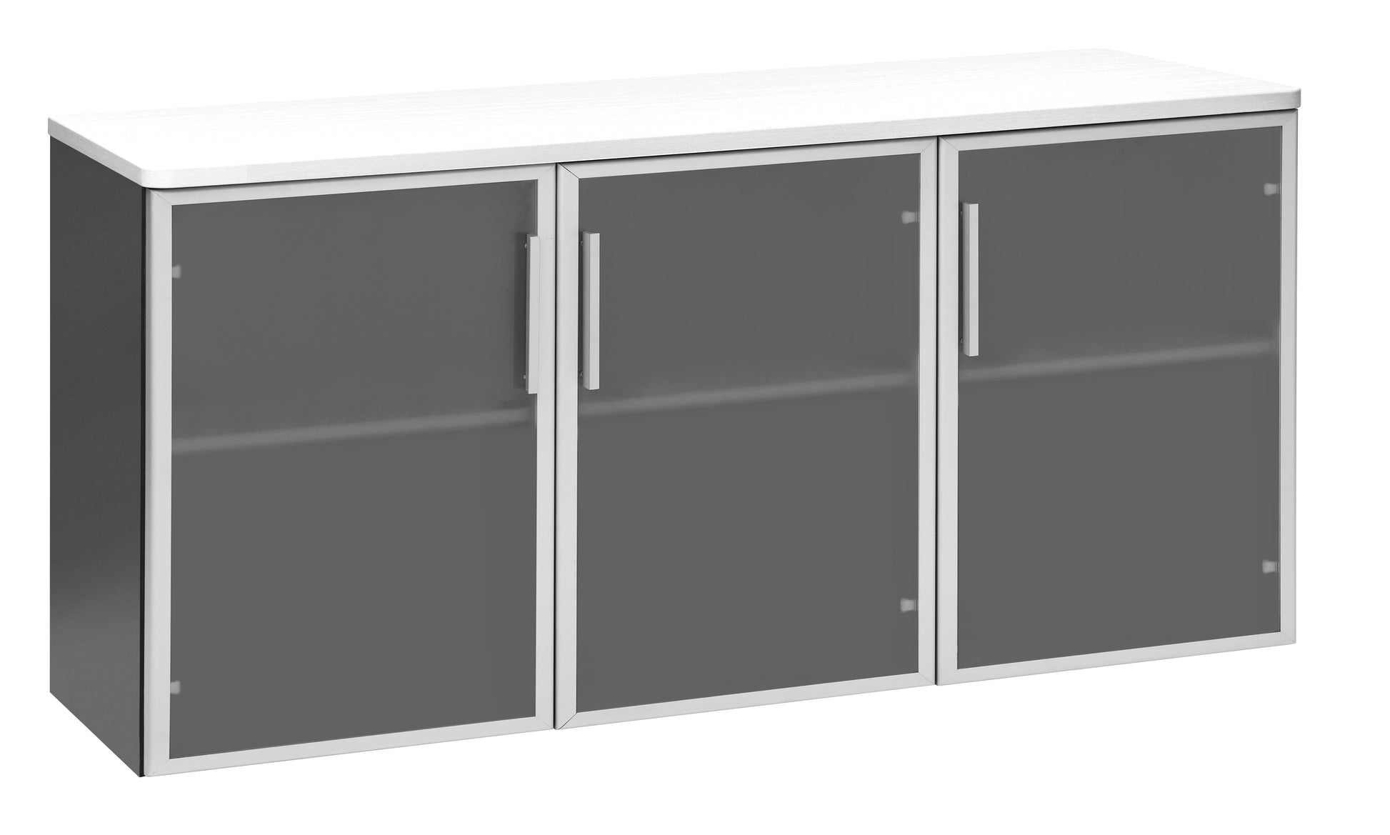 PULSE OFFICE CREDENZA 1500Wx450D IRONSTONE FRAME WHITE TOP AND 3 GLASS DOORS
