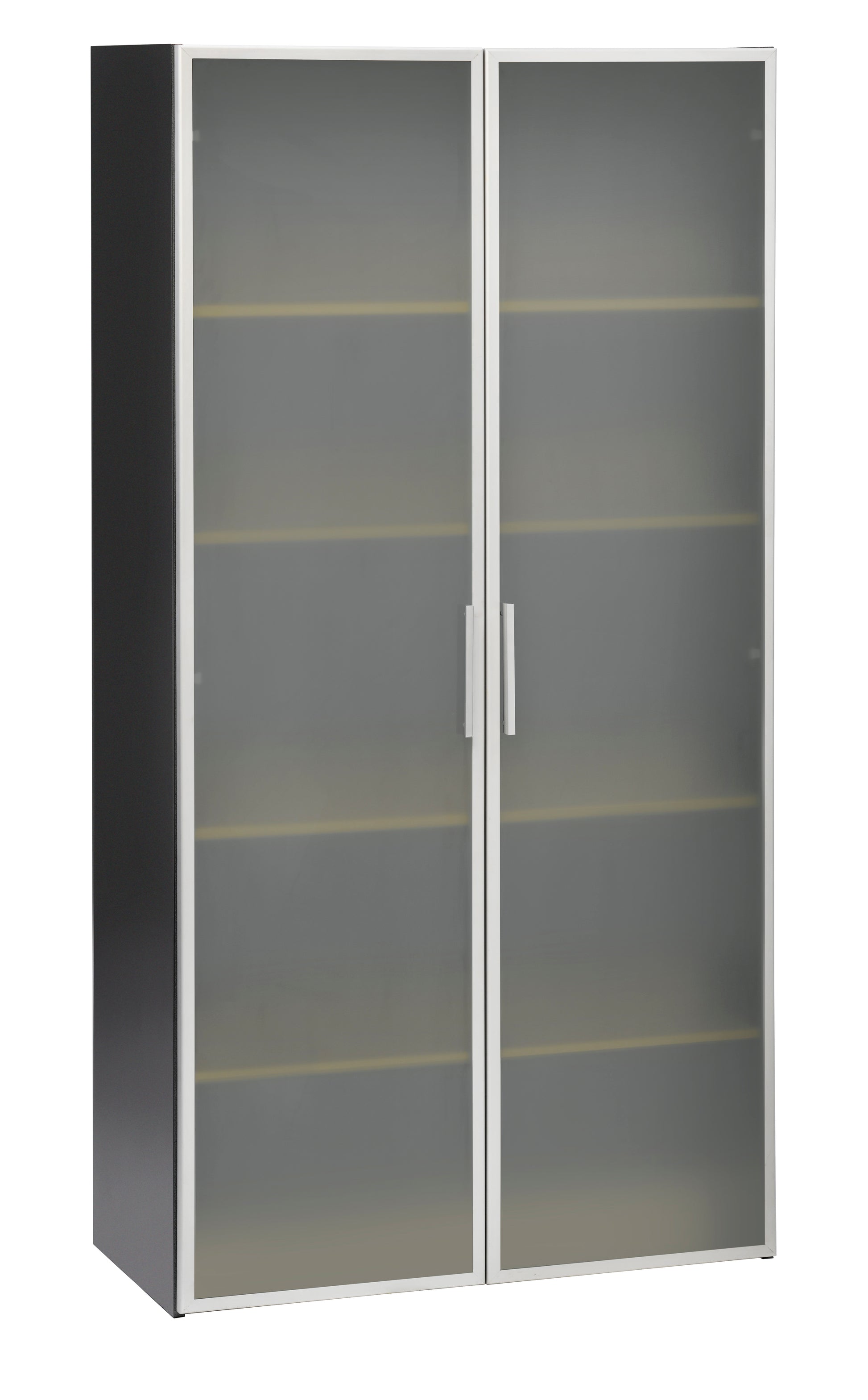 EMERGE OFFICE STORAGE CUPBOARD IRONSTONE FRAME WITH BEECH SHELVES AND 2 FULL HEIGHT GLASS DOORS