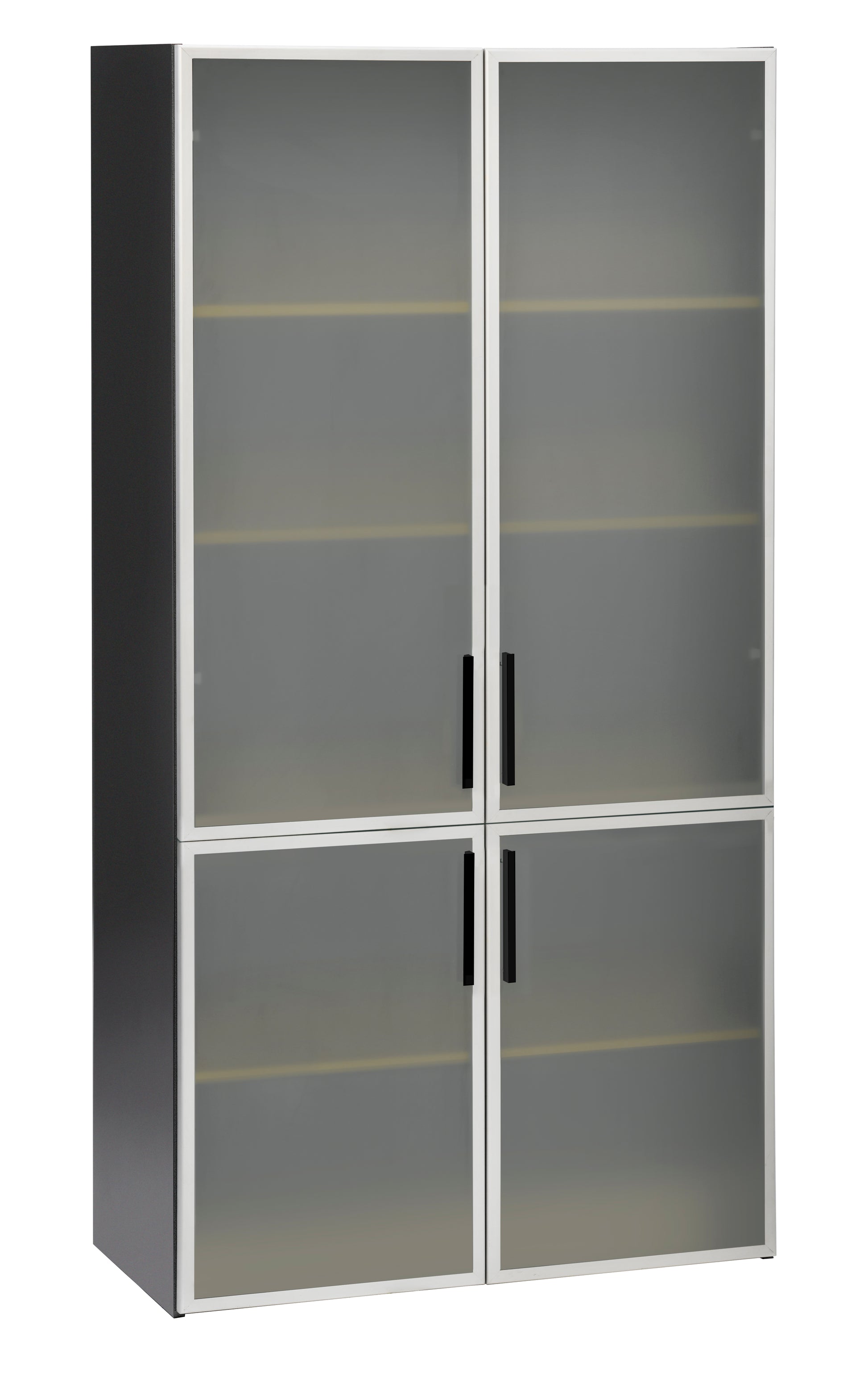 PULSE OFFICE STORAGE CUPBOARD IRONSTONE FRAME WITH BEECH SHELVES AND 4 GLASS DOORS