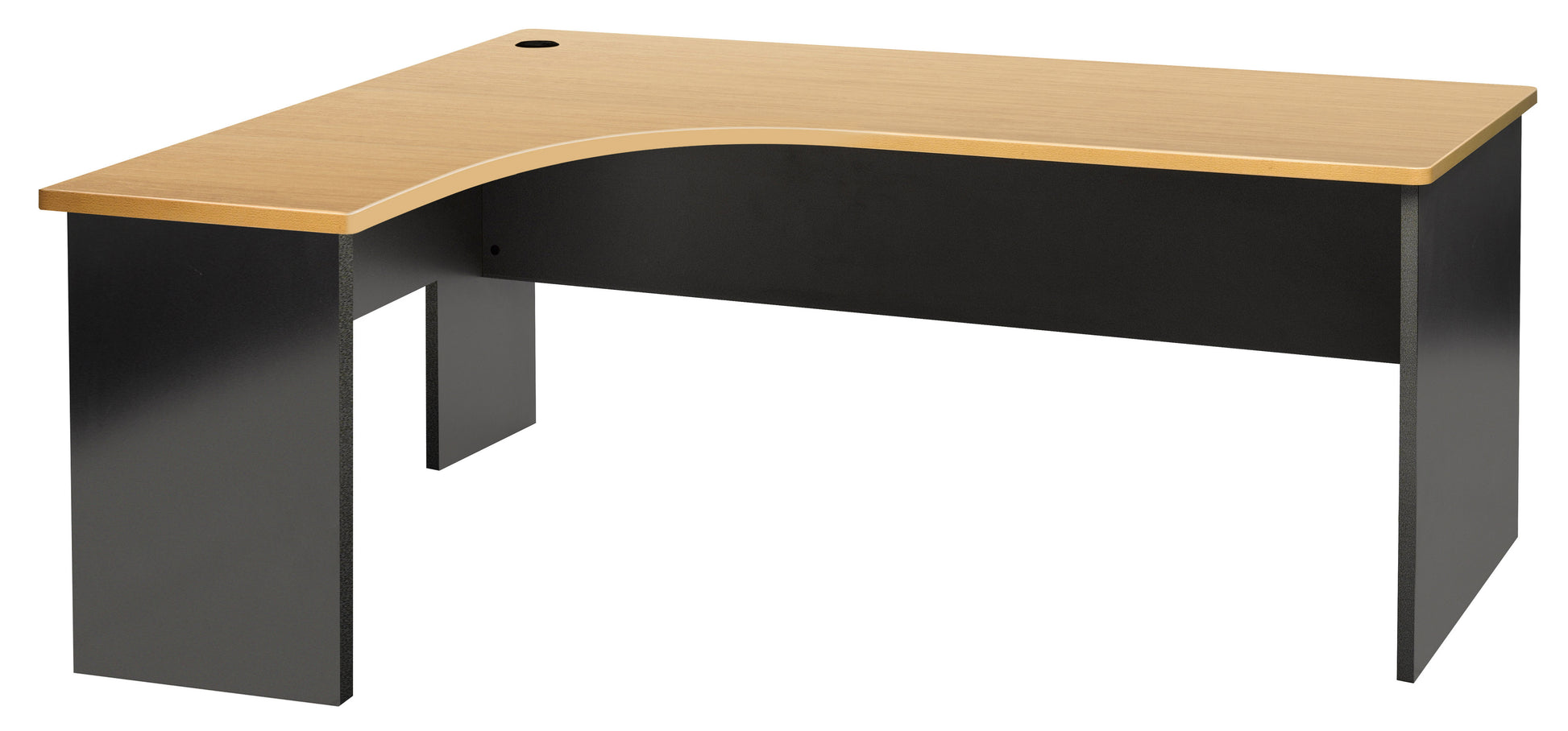 PULSE SLAB END CORNER DESK WORKSTATION 1200W-LEFTx1800W-RIGHTx600D IRONSTONE BASE WITH BEECH WORKTOP