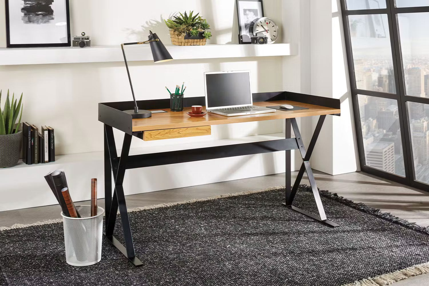 URBAN DESK BLACK STEEL FRAME WITH OAK WORKTOP 1400Wx600D